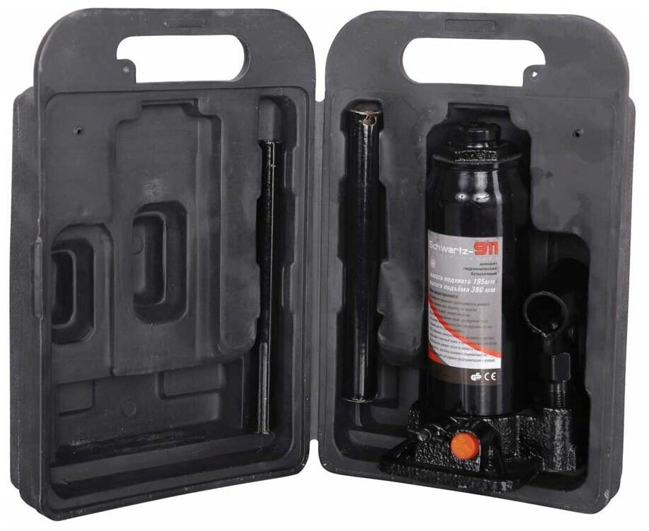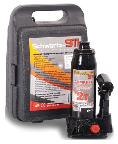 Домкрат SCHWARTZ-911 позволяет осуществлять плавный подъем и опускание груза при небольшом усилии. Высота подъема – 345 мм. Широкая симметричная опорная площадка обеспечивает высокую устойчивость домкрата. Предохранительный клапан защищает от перегрузки и делает модель безопасной.