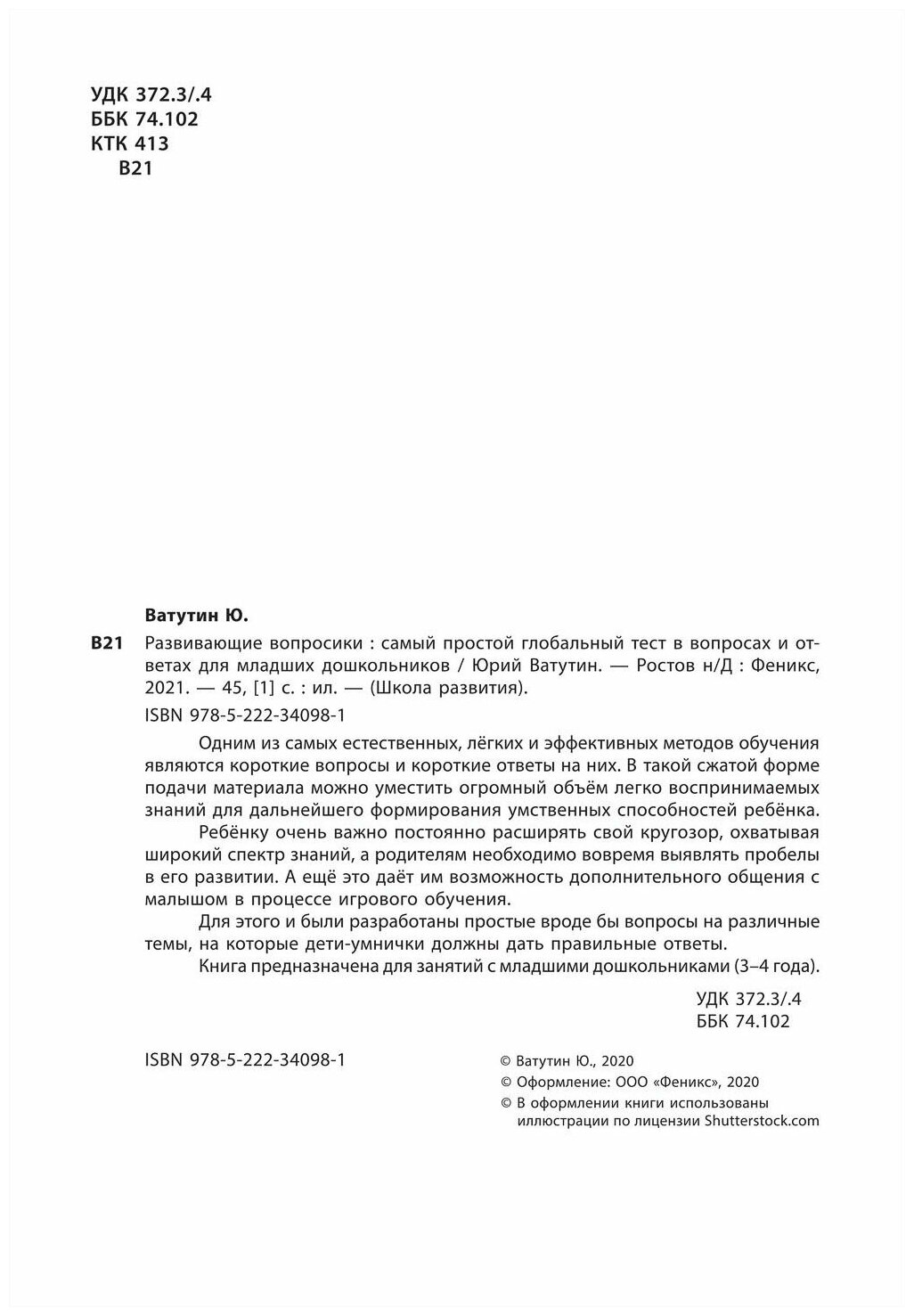 Развививающие вопросики. Самый простой глобальный тест в вопросах и ответах для младших дошк. (Ватутин Юрий Юрьевич); Феникс, 2021