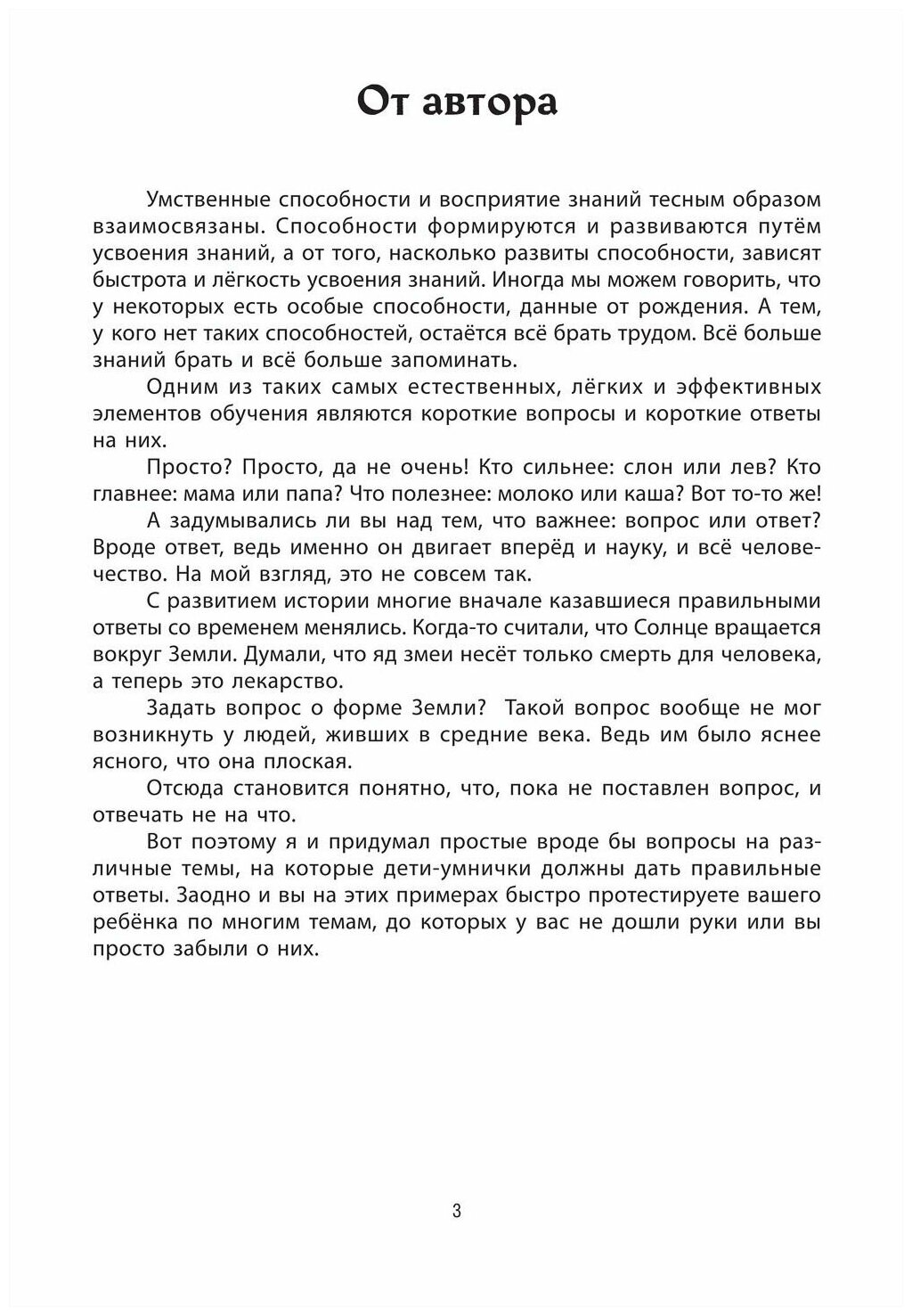 Одним из самых естественных, лёгких и эффективных методов обучения являются короткие вопросы и короткие ответы на них. В такой сжатой форме подачи материала можно уместить огромный объём легко воспринимаемых знаний для дальнейшего формирования умственных способностей ребёнка.