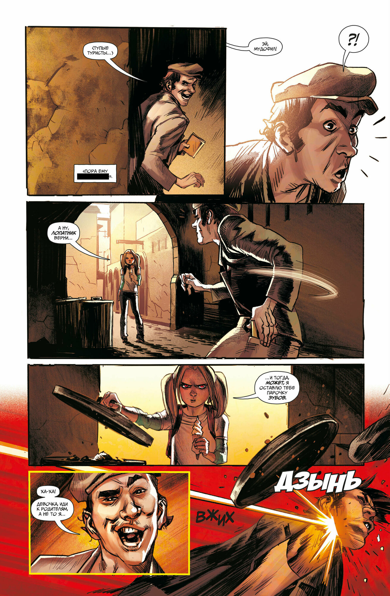 Исключительно жанровый комикс. В этот раз главная героиня гоняет по Риму и шинкует плохих парней направо и налево, популяризуя и нормализуя насилие в глазах читателей. Причём делает она это в компании другой героини, воровки, что ещё сильнее размывает грань между добром и злом. Возрастная маркировка в 18+, конечно, присутствует, но для большинства людей старше 18 этот комикс будет попросту неинтересен, а для остальных всё портит крайне спорная мораль: убивать людей можно, если они плохие. А судьи кто?