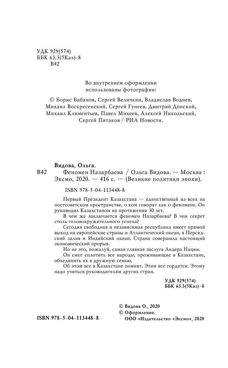 Книга: Феномен Назарбаева (Видова Ольга Ивановна); ООО "Издательство "Эксмо", 2020