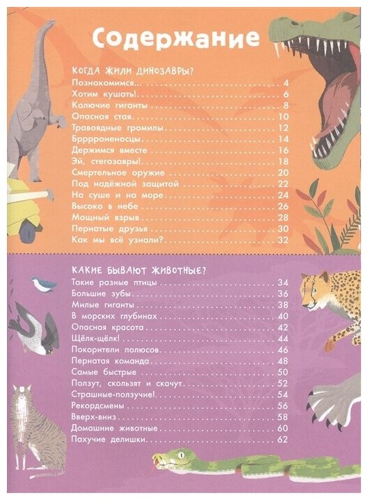 Замечательная энциклопедия для ребёнка. Книга достаточно объёмная, в ней представлена информация по нескольким темам: животные, динозавры, человек, техника. Иллюстрации рисованные, не очень яркие, но все страницы цветные, белых листов здесь не найти. Много разных фактов, изложенных в двух-трех предложениях. Ребёнок с удовольствием сначала ростом листал страницы, смотрел картинки.