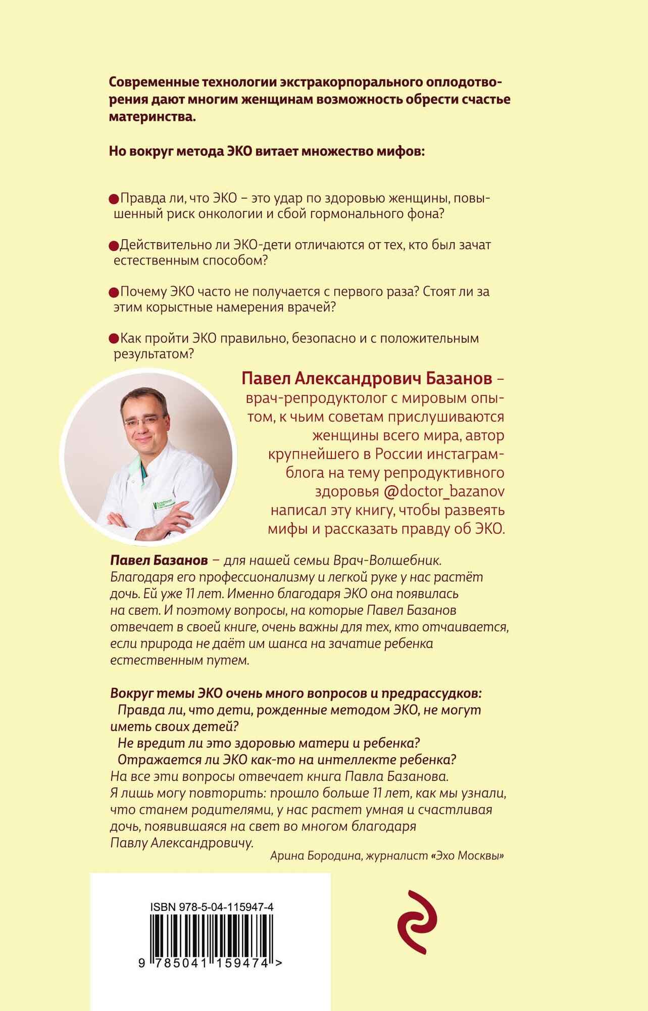 автор крупнейшего в России Инстаграм блога на тему репродуктивного здоровья - @doctor_bazanov написал эту книгу, чтобы развеять мифы и рассказать всю правду об ЭКО!