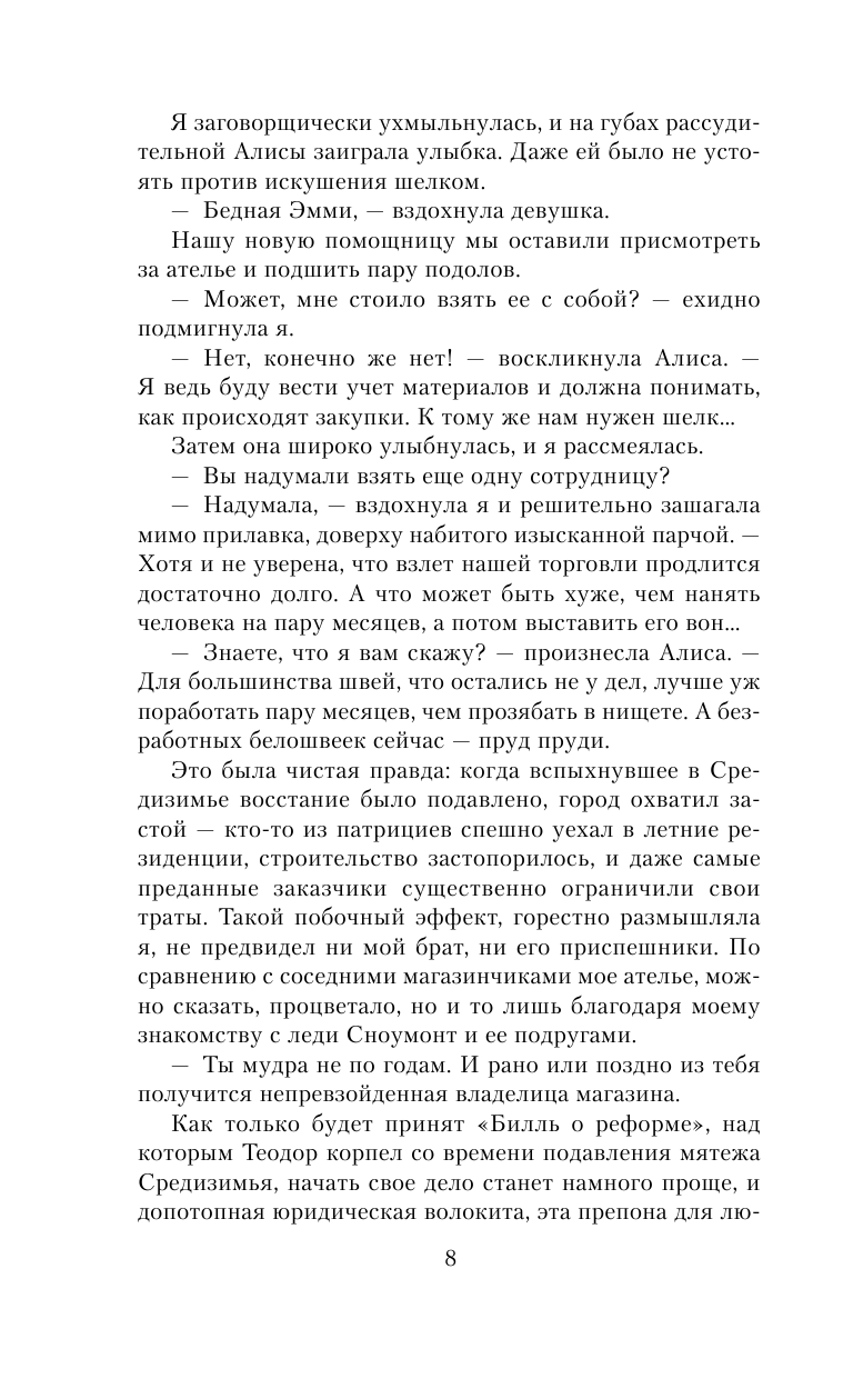Да, я хотела выйти замуж за человека, которого любила, хотела занять более высокое положение, чтобы отстаивать интересы простых людей. И да – чего уж скрывать – меня терзал страх, что высшее общество отвернется от меня. Что я потеряю свое ателье, мою отдушину.