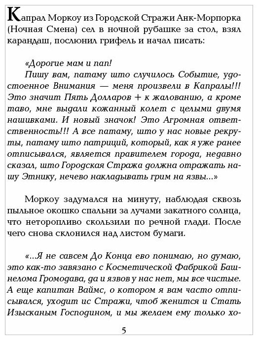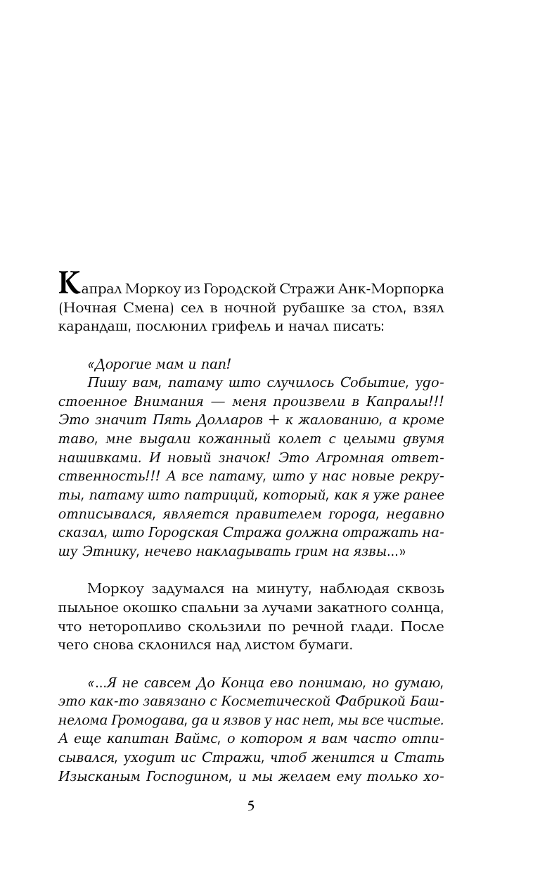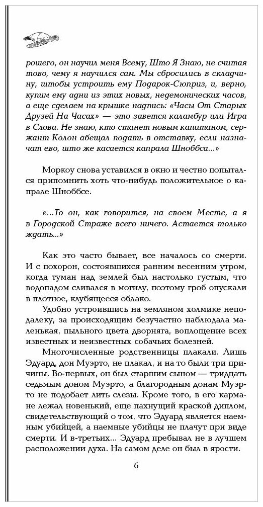 Чудесное продолжение истории об уже полюбившейся Ночной Страже. Помимо старых, знакомых героев в страже появляются новые - гномы, тролли и конечно же чудесный Гаспод (пожалуй, лучшая собака Анк Морпорка). В этот раз история о Плоском мире превратилась в настоящий детектив (да, да, даже в мире с узаконенной преступностью могут случиться настоящие преступления). Удастся ли Страже поймать преступника и заодно отпраздновать свадьбу капитана Ваймса?)