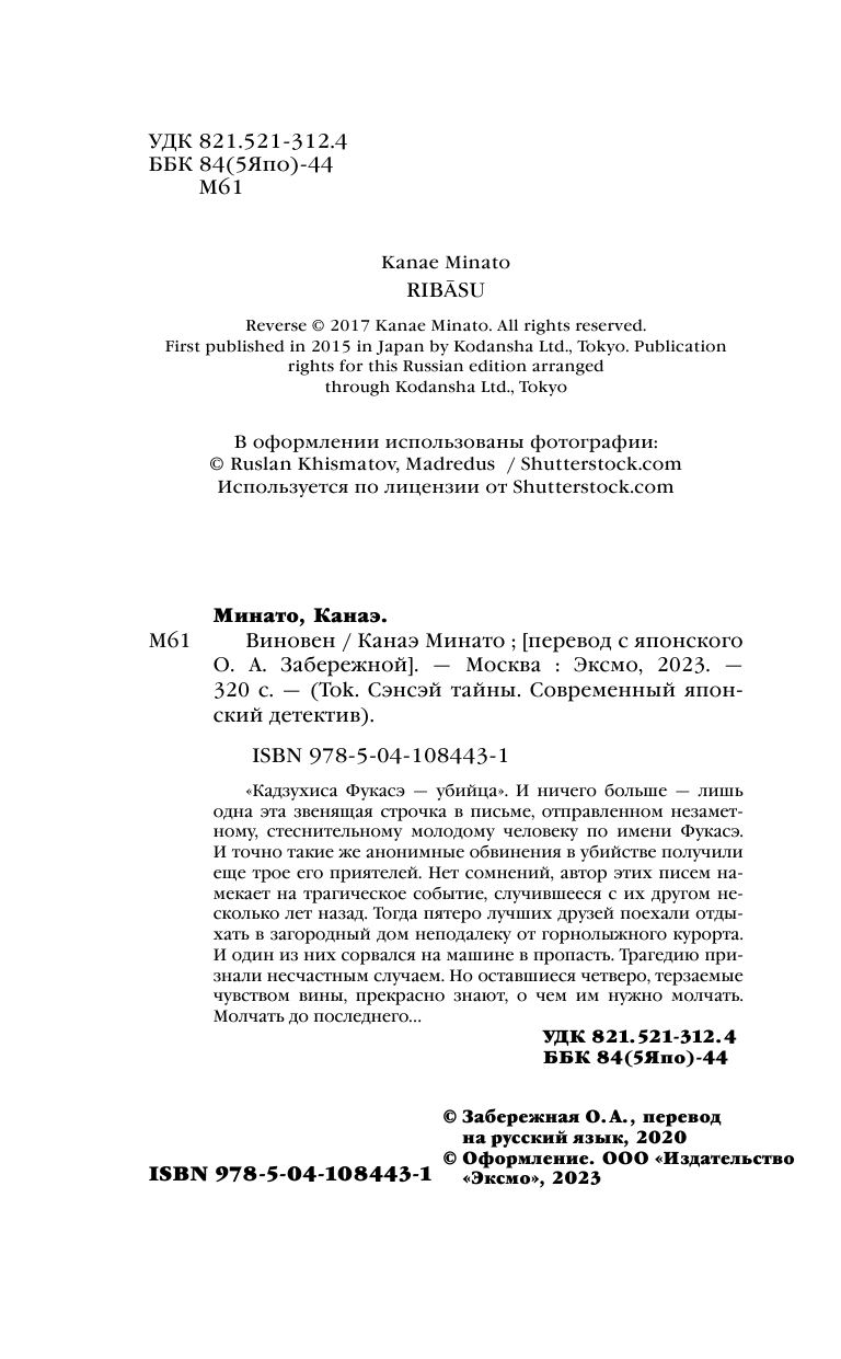 Книга: Виновен (Канаэ Минато); Эксмо, Inspiria, Редакция 1, 2023