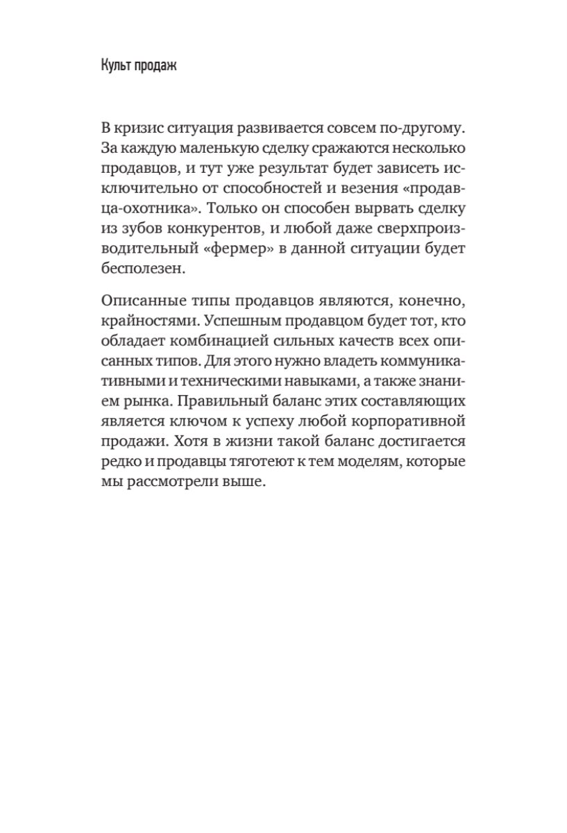 Книга "Культ продаж" содержит много практических инструментов и готовых решений и станет полезной не только менеджерам по продажам, но и широкому кругу читателей, никак не связанных с бизнесом.