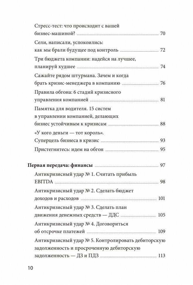 Цель этой книги - обогатить миллионы руководителей новыми знаниями и решимостью действовать. Я убежден: у каждого собственника или генерального директора в сейфе должен лежать свой антикризисный листок. Берите из этой книги базу - знания и инструменты - и составляйте свой собственный "рецепт выживания", учитывая специфику вашего бизнеса. И выводите компанию из кризиса на новые рубежи.