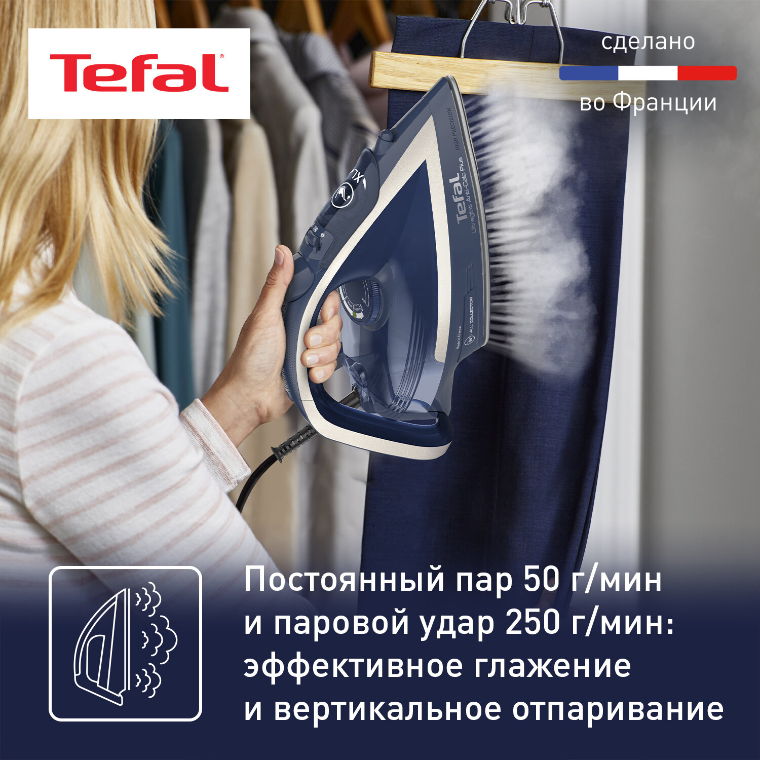Утюг Tefal Ultragliss Anti-Calc Plus создан, чтобы сделать глажение простым и удобным и радовать вас безупречными результатами день за днем. Утюг оснащен мощностью 2800 Вт для быстрого нагрева и подает постоянный пар со скоростью 50 г/мин для более эффективного глажения. Паровой удар достигает 250 г/мин и помогает разглаживать плотные ткани и стойкие складки. Эксклюзивный съемный коллектор для накипи облегчает очистку утюга и позволяет поддерживать его долгую службу. Подошва Durilium Airglide гарантирует максимальное распределение пара благодаря 100% активным паровым отверстиям, защищена от царапин и долго остается идеально гладкой. Подарите вашим вещам более качественный уход с утюгом Tefal Ultragliss Anti-Calc Plus.