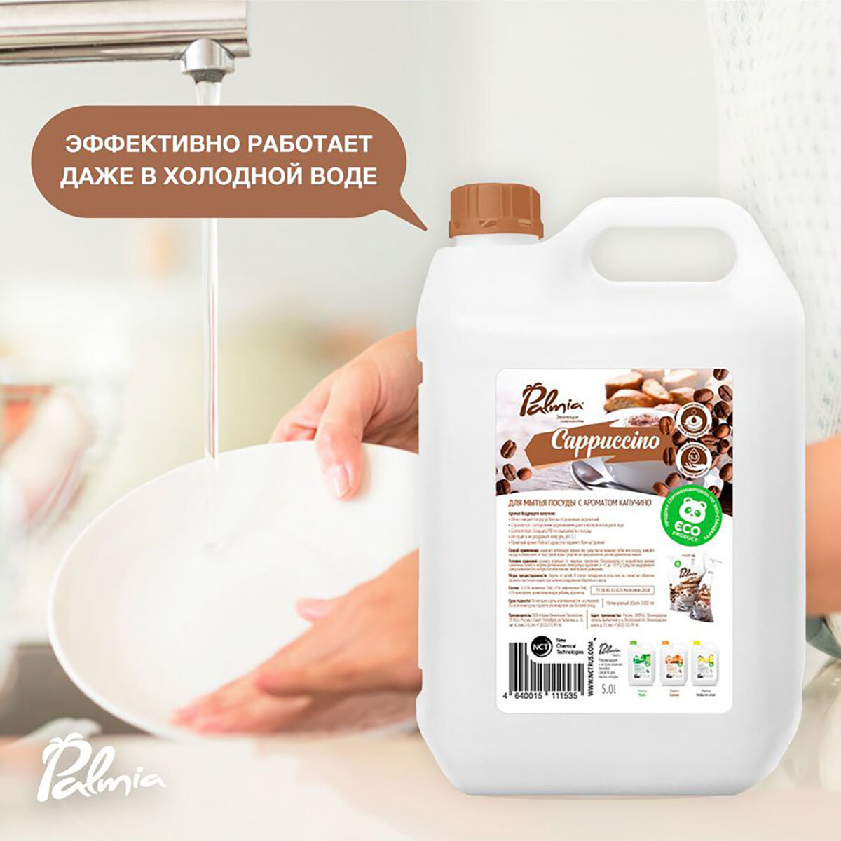 Palmia Cappuccino Palmia Cappuccino– гипоаллергенное средство для мытья посуды с ароматом капучино от New Chemical Technologies.Нежный аромат капучино подарит вам незабываемое наслаждение и окутает вас теплотой и уютом. Продукт сертифицирован по ЭКО – стандарту РФ Безопасны для детей и взрослых Премиальное качество в экономичной упаковке Использование в производстве только высококачественного сырья Не раздражает кожу рук, низкий уровень PH~5,3 Смывает любые загрязнения и трудновыводимые запахи (например, запах рыбы) Хорошее пенообразование В 9 раз превышает стандарты по смываемости с посуды Суперсмываемость позволяет экономить воду Эффективно в холодной и жесткой воде Приятный аромат капучино Безопасно для септиков