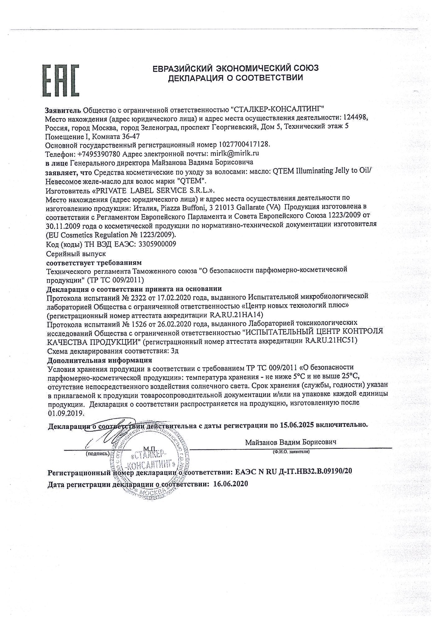 Все уникальные свойства компонентов заключены в особой секретной формуле QTEM ILLUMINATING JELLY TO OIL.