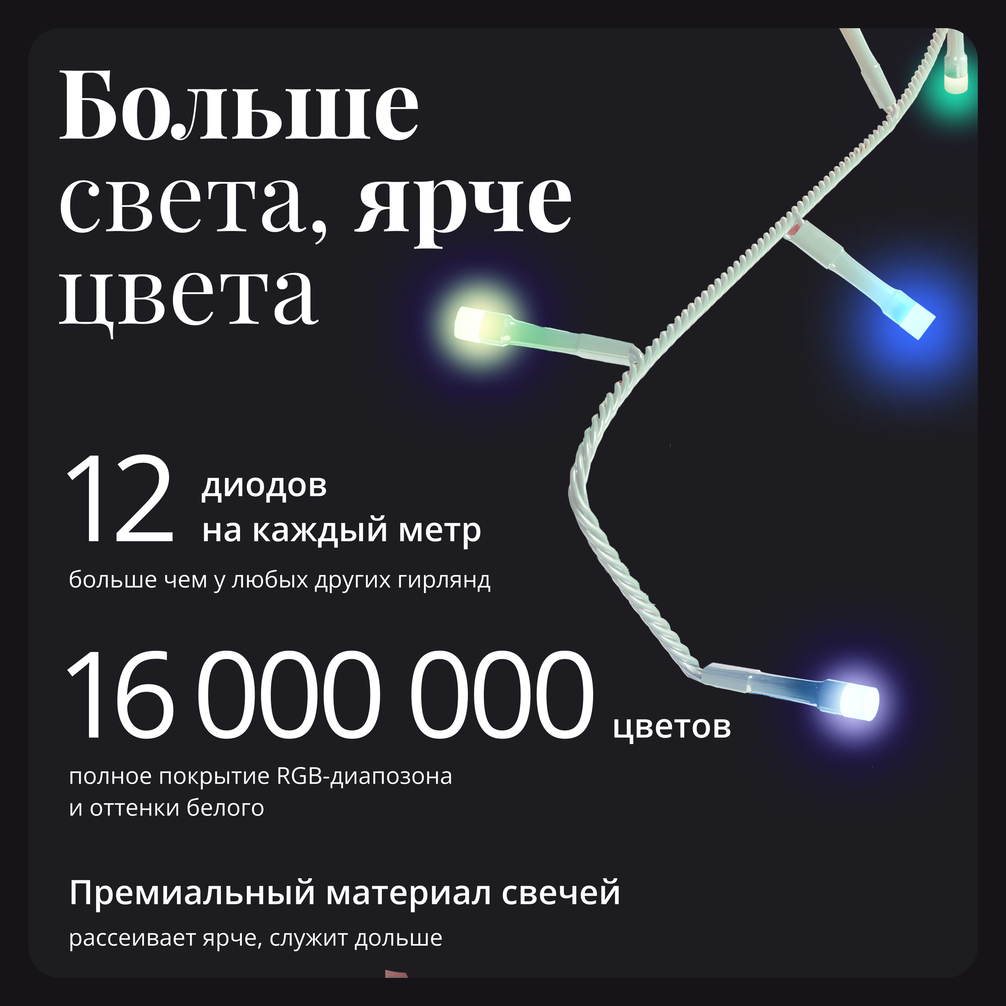 | Дополнительно | Уличные гирлянды 20 метров |
