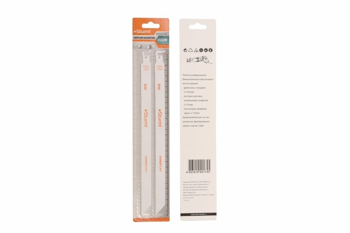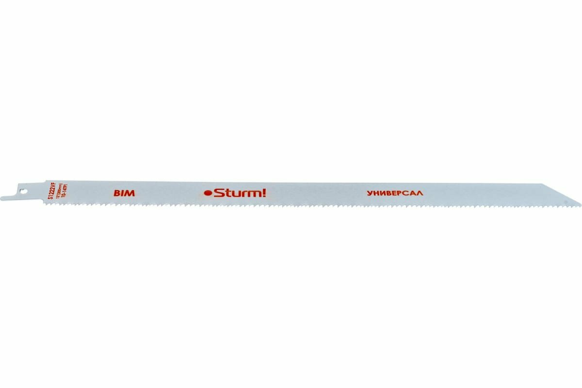 Полотно для сабельной пилы Sturm! УНИВЕРСАЛЬНОЕ, изготовлено из биметалла (высокоуглеродистой и быстрорежущей сталей), что обеспечивает прочность тела и устойчивость к затуплению режущей кромки полотна. Полотна предназначены для распила:
