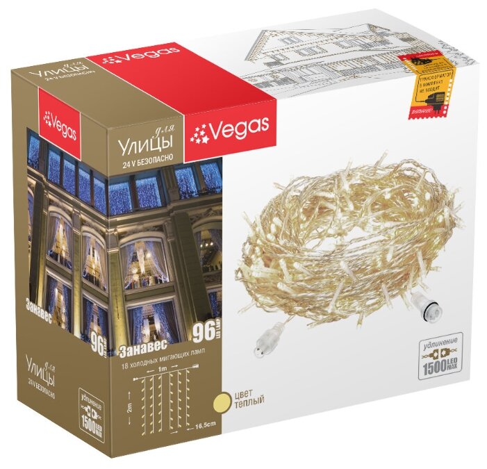 На сегодняшний день товар «Гирлянда 96 ламп 2х1 м 1 режим Занавес Vegas свет теплый прозрачная на улице/в помещении сетевая LED мигание 6 нитей 55023 Электрогирлянда-конструктор светодиодная Занавес 96 ламп 2x1 м» можно купить с кешбеком в 2 магазинах: Яндекс.Маркет, 21vek BY