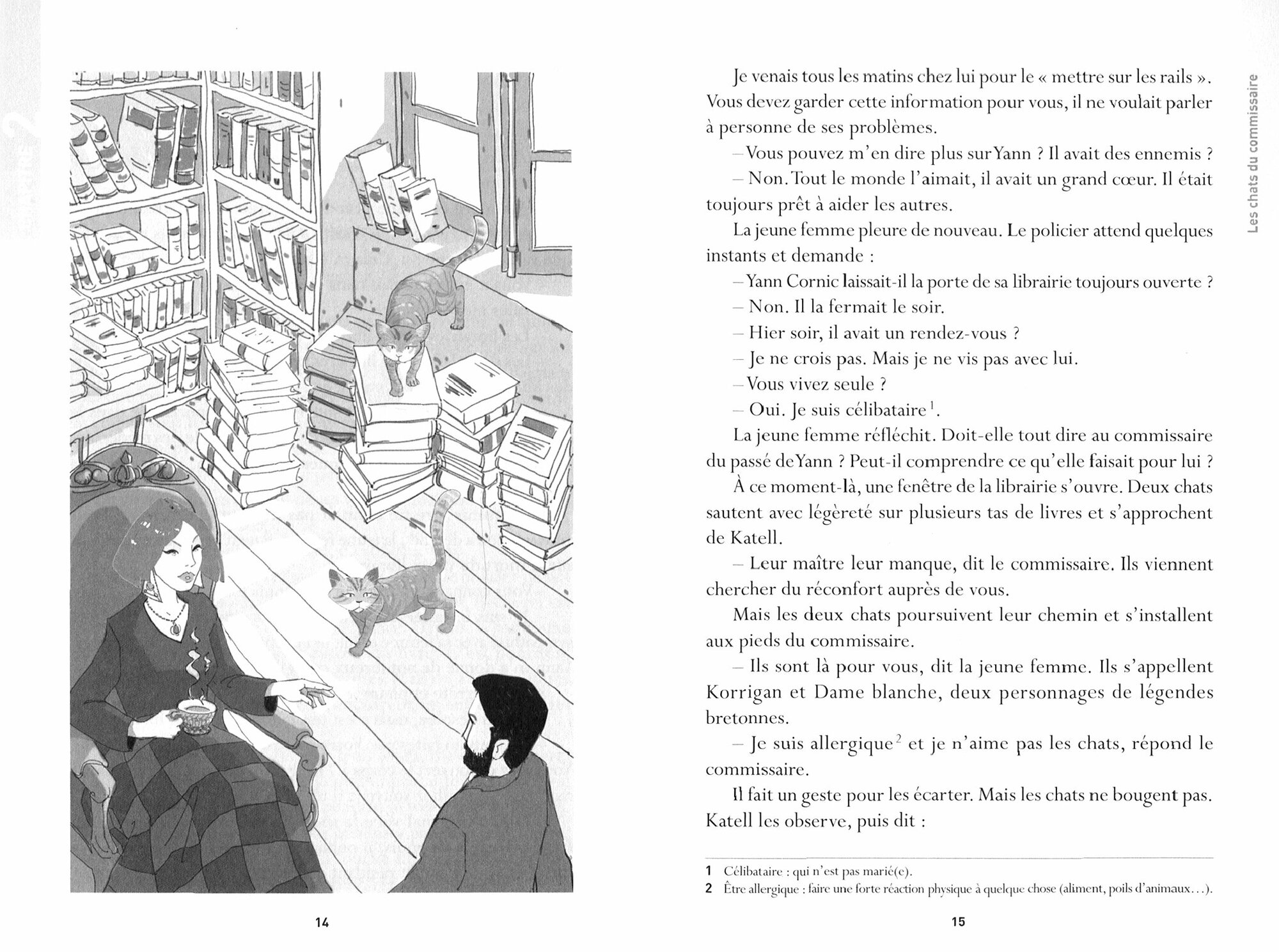 Qui a tue Yann Cornic, un libraire de 74 ans, a Becherel, une petite ville tranquille de Bretagne ? Les chats de la victime, Korrigan et Dame blanche, ont une idee... Mais le commissaire Bourdon, allergique aux livres et aux poils de chat, veut-il les ecouter ? Le CD audio contient la totalite du texte enregistre. Un dossier pedagogique propose des activites pour controler ta lecture et l'ecoute du texte, reemployer le vocabulaire ainsi que des fiches pour aller plus loin.