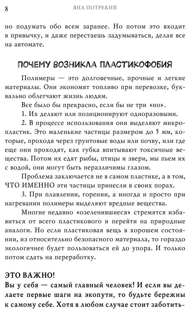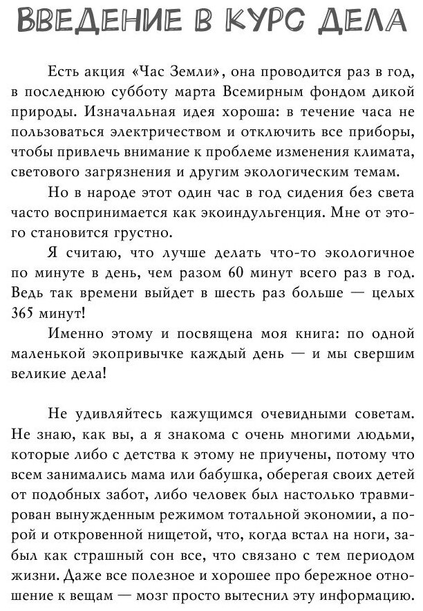 В последнее время стараюсь внедрять в свою жизнь как можно больше экологичных привычек, и эта книга стала для меня просто открытием! Если вы хотите вести более экологичный образ жизни, но не знаете, с чего начать, эта книга даст вам массу практических советов и идей! Рекомендую к прочтению каждому!
