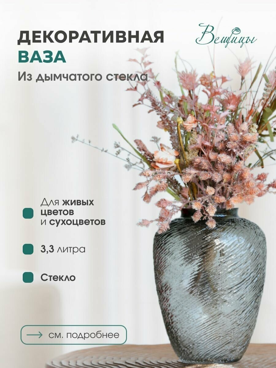 На сегодняшний день товар «Декоративная ваза из дымчатого стекла Д165 Ш165 В220 серый Hoff CSA-8S» можно купить с кешбеком в 1 магазине: Яндекс.Маркет