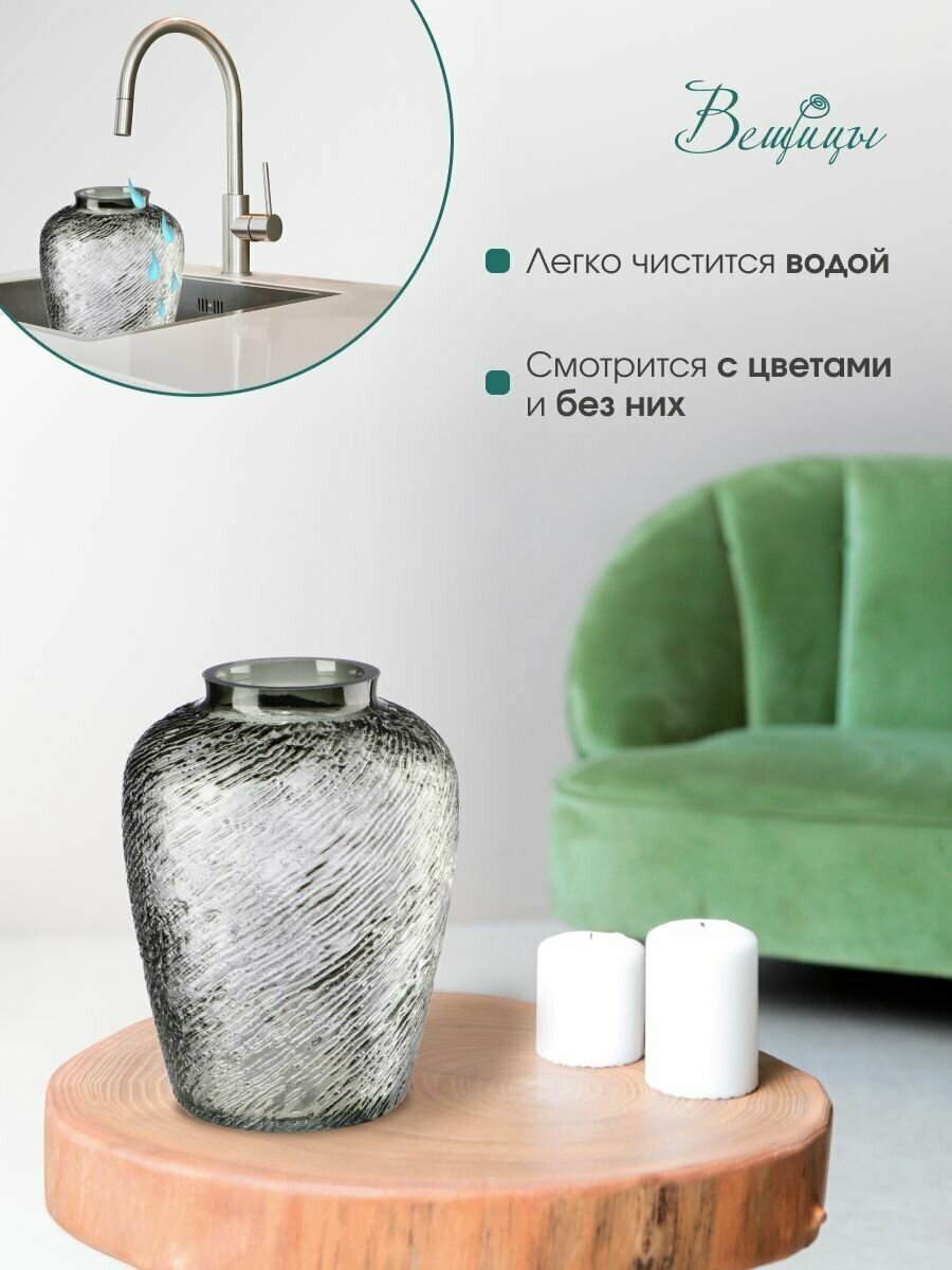 Декоративная ваза из дымчатого стекла Д165 Ш165 В220 серый Hoff CSA-8S