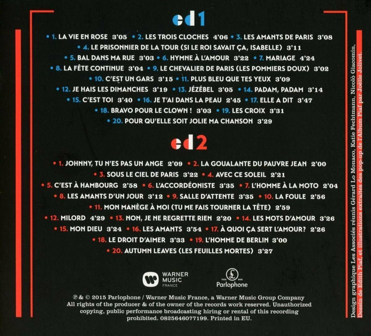 «100eme anniversaire» - это альбом, вышедший к 100-ию дня рождения знаменитой французской певицы и актрисы Edith Piaf, выпущенный 30 октября 2015 года под лейблом «Warner Music Group». В альбом вошли два диска с лучшими треками, которые прошли ремастеринг.