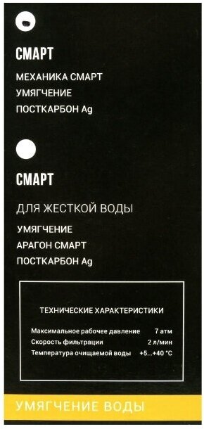 | Состав комплекта | Механика Смарт, Умягчитель Смарт, Посткарбон Ag |