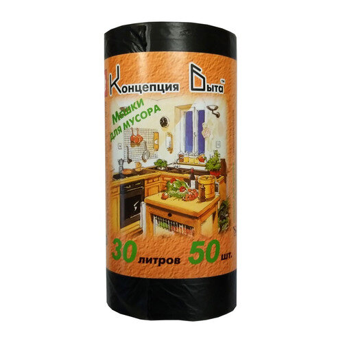 Пакеты мусорные Концепция быта 30л 6мкм черный в рулоне (упак.:50шт) (1169)