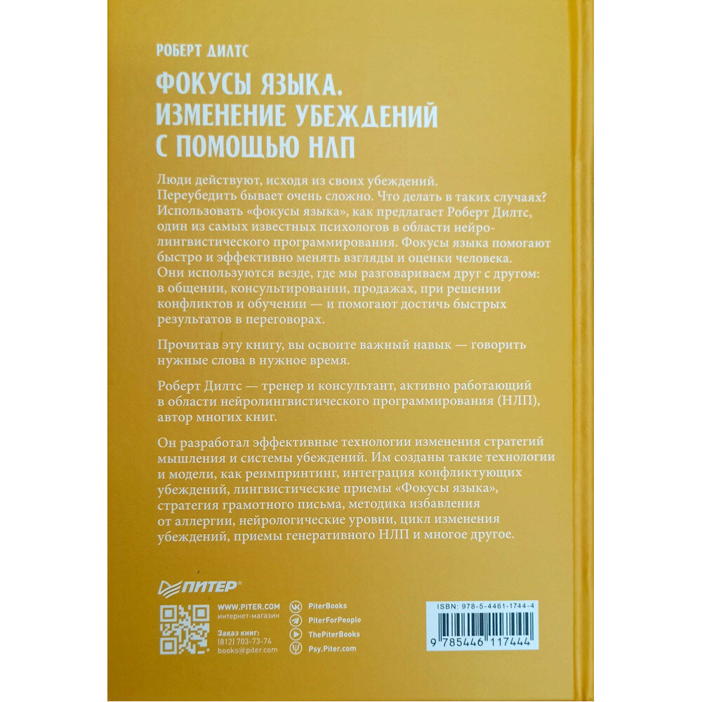 Сервис сравнения цен СкидкаГИД предлагает сравнить цены на товар «Книга: Фокусы языка. Изменение убеждений с помощью НЛП (Роберт Дилтс); Питер, 2022»