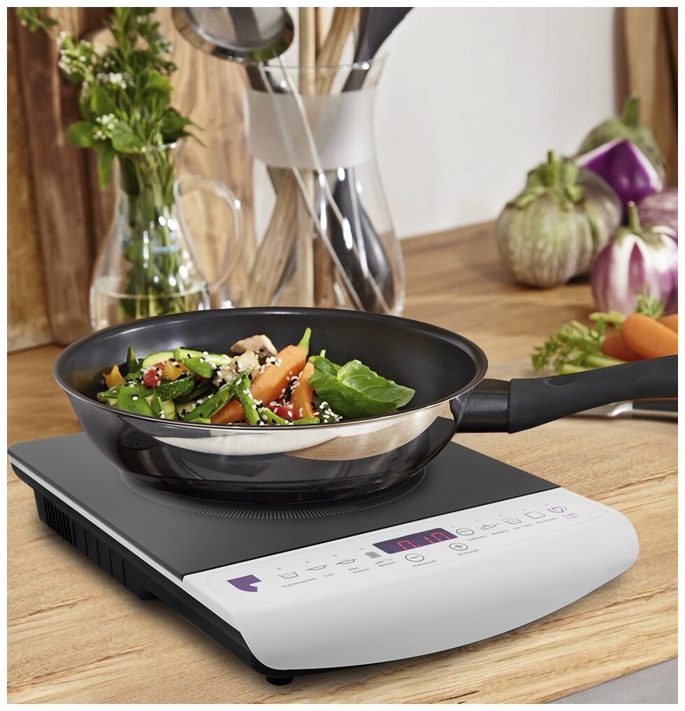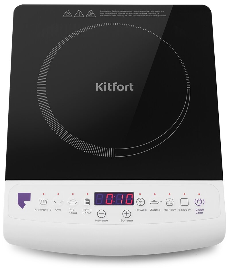 Скорость приготовления на индукционной плите KITFORT КТ-101, несомненно, впечатлит тех, кто раньше готовил только на обычных нагревательных плитах. Вода на плите KITFORT закипает примерно в 2 раза быстрее, чем на стеклокерамической плитке аналогичной мощности. При этом расход электроэнергии у KITFORT КТ-101 значительно ниже — в этом легко убедиться благодаря функции учета затраченной энергии.