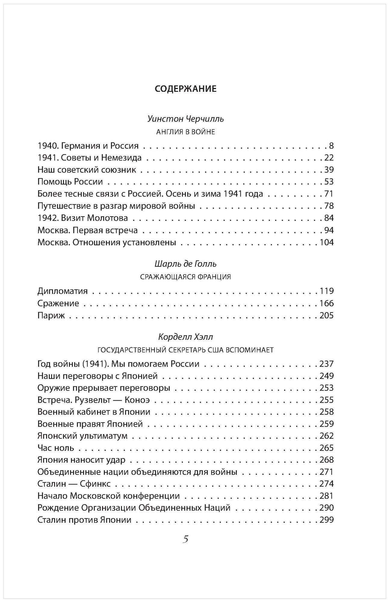 Воспоминания У. Черчилля, Ш. де Голля, К. Хэлла, У. Леги и Д. Эйзенхауэра посвящены сотрудничеству СССР и стран антигитлеровской коалиции во время Великой Отечественной войны. В те годы они стояли в центре политических и военных событий, играли определяющую роль в формировании политики своих стран, планировании и осуществлении стратегических операций против держав "оси". Мемуары выдающихся деятелей Запада позволяют более полно осветить события тех лет, показать степень участия каждой из сторон в разгроме гитлеровской Германии.