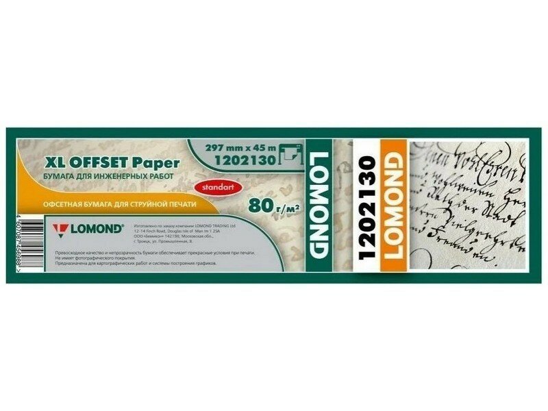 Бумага Lomond инженерная "Стандарт" 297 мм х 45 м, 80 г/м², втулка 2"/50 мм.Поставляется в рулоне шириной 297 мм и длиной намотки 45 м. Плотность бумаги - 80 г/м², формат - баннер. Предназначена для струйной печати.Инженерная бумага Lomond применяется для картографических работ, печати чертежей, графиков и т. п.Подходит для печати водорастворимыми и пигментными чернилами на инженерных копировальных машинах, широкоформатных копировальных аппаратах и плоттерах.Бумага Lomond для инженерных работ обладает матовой поверхностью, непрозрачностью и превосходным качеством печати. Не имеет фотографического покрытия.Основные характеристики:Формат: баннер;