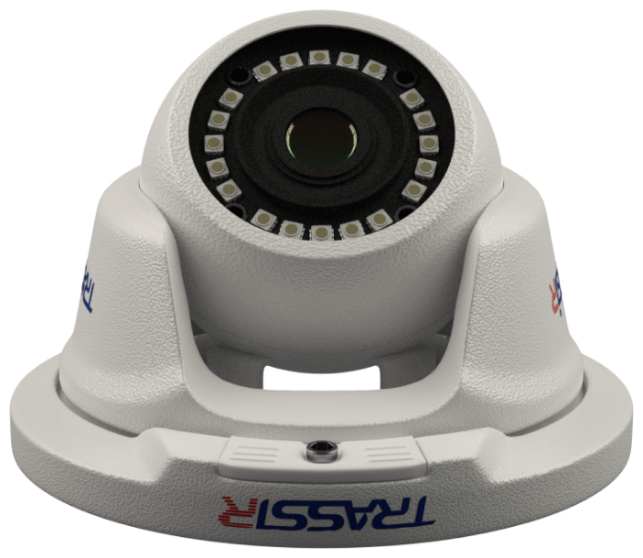 2 Мп (1920×1080) IP-камера TRASSIR (3.6 мм) адаптирована к работе на улице: корпус отвечает требованиям стандарта от влаги и пыли IP66;