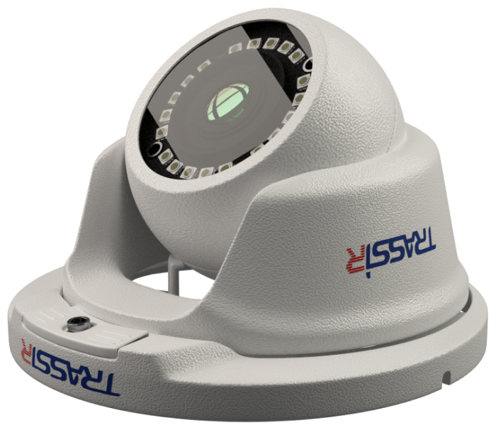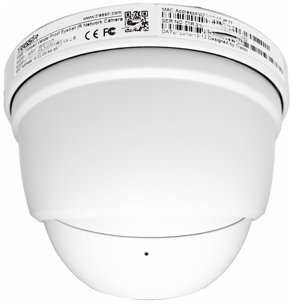 диапазон рабочих температур — -40 °C…60 °C. Базируется на высокочувствительной (0.005 лк) CMOS-матрице, способной формировать видео в цвете даже при недостаточном освещении, что уменьшает время работы в черно-белом режиме. Оборудована ИК-подсветкой с дальностью действия 25 м — для ночного видеонаблюдения.Улучшение изображения :WDR 96 дБ — снижение влияния разноконтрастного освещения на качество изображения путем выбора оптимальной выдержки в границах 96 дБ.3D DNR — шумоподавление.BLC — компенсация засветки фона.Defog — улучшение контрастности, минимизирующее размытость, обусловленную туманом, задымлением, запотеванием оптики.TRASSIR (3.6 мм) укомплектована объективом с фиксированным фокусным расстоянием 3.6 мм, апертурой F/1.8. Поддерживает день/ночь с автоматическим переключением, оснащена механическим ИК-фильтром для блокировки (при достаточном освещении) инфракрасных лучей, искажающих цветопередачу. Транслирует потоки, сжатые кодеками H.265, H.264, со скоростью 25 к/с. Оборудована сетевым портом RJ-45 с поддержкой PoE и разъемом питания (БП в комплект не входит). Питание — DC 12 В или PoE. Энергопотребление — не более 5.5 Вт. Габариты — Ø105×72 мм, вес — 370 г.