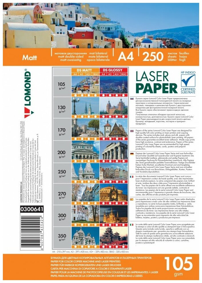 Фотобумага LOMOND Двухсторонняя Матовая, для лазерной печати, 105 г/м2, A4/250л.