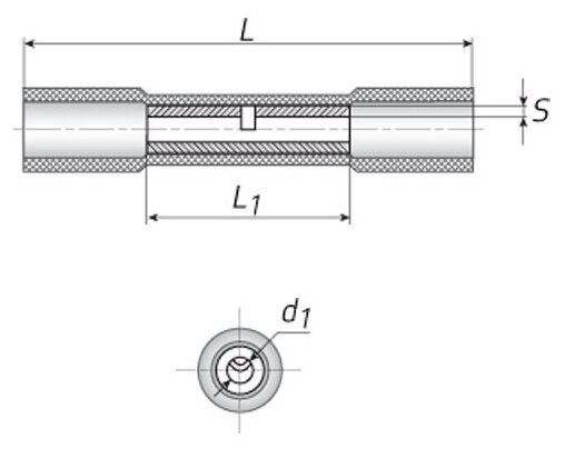 Гильза соединительная КВТ ГСИ-Т 1.5 предназначена для соединения встык медных проводов методом опрессовки. Гильза выполнена из бесшовной цельнотянутой медной трубки. Стопорная высечка, расположенная по центру гильзы, определяет глубину захода провода в соединитель. Снятые по краям гильзы фаски облегчают заведение провода. Термоусаживаемая трубка с клеевым слоем обеспечивает полную герметичность и антикоррозионную защиту контактного соединения после усадки. Полупрозрачный корпус позволяет контролировать глубину захода жил. В пределах указанного диапазона возможно соединение в одну линию проводов разных сечений или монтаж ответвления. Опрессовка поверх изолирующего корпусаПреимущества Материал изоляции - сшитый полиэтилен Не содержит галогенов Термостойкость изоляции - 125 °C Материал гильзы - медь марки М1 Покрытие гильзы - электролитическое лужение Максимальное напряжение - 690 В