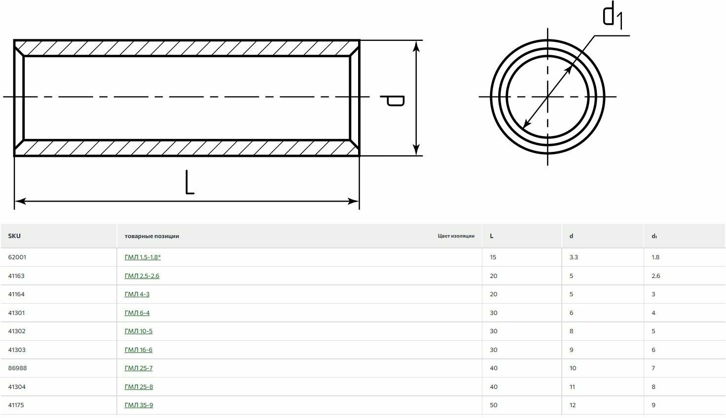 Предназначены для соединения опрессовкой медных кабелей и проводов. Материал: электротехническая медь марки М2. Покрытие: олово-висмутовое лужение (климатическое исполнение Т2). Рабочее напряжение: до 10 кВ. Гильзы имеют сквозную конструкцию. Матовое лужение с добавками висмута обеспечивает повышенную коррозионную стойкость защитного покрытия. Внутренний и внешний диаметры гильз ГОСТ 23469 соответствуют размерам труб, из которых изготавливаются наконечники ГОСТ 7386. Гильзы по ГОСТ рассчитаны на кабели и провода 5-го и 6-го классов гибкости. Для монтажа стандартных жил 2-го и 3-го классов гибкости рекомендован выбор размеров по специальной таблице. Гильза ГМЛ 1.5 - нестандартное исполнение. Специальная серия высокоточных матриц MW-образной формы для опрессовки. Матрицы совместимы с гидравлическими прессами КВТ. Комплексное решение от производителя: кабельные наконечники и гильзы. инструмент и матрицы для опрессовки. рекомендации по технология монтажа.