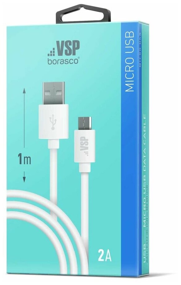 Кабель BoraSCO подходит для заряда и синхронизации любых устройств с разъёмом microUSB. Передача данных осуществляется на скорости до 480 Мбит/с. Кабель рассчитан на пропускной ток до 2 А, поэтому может использоваться для быстрой зарядки. Провод в ПВХ оболочке обладает гибкостью, эластичностью и надежностью.