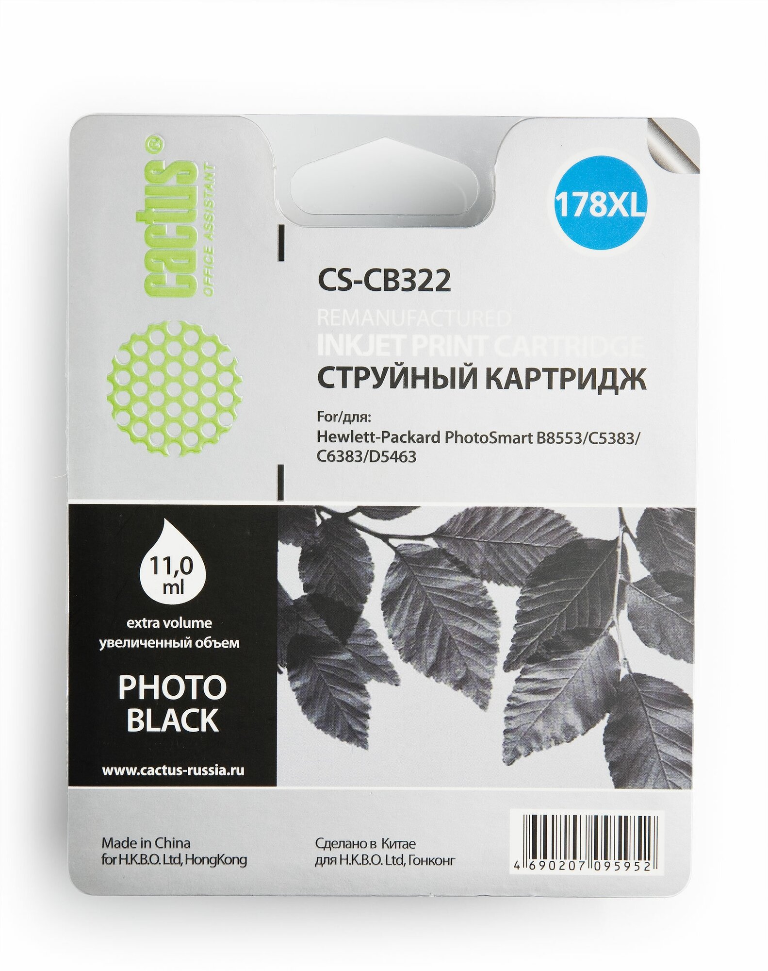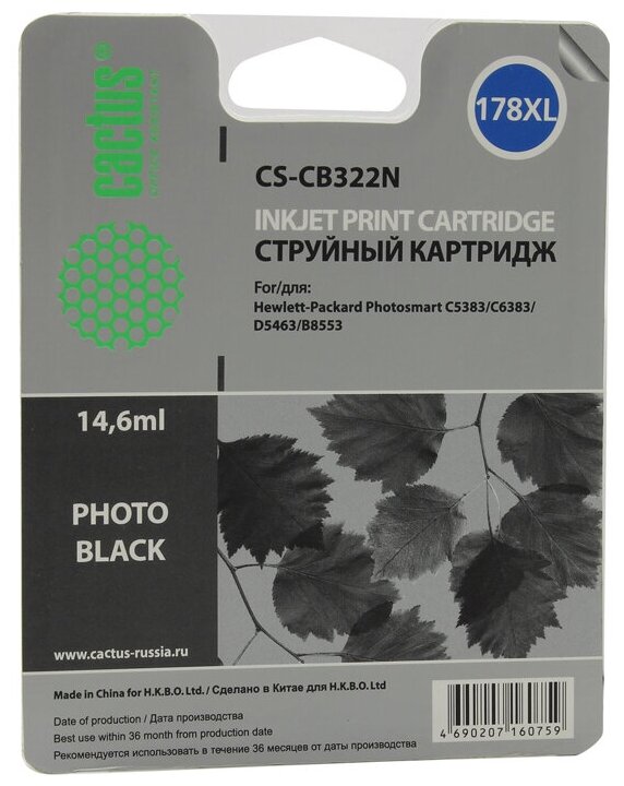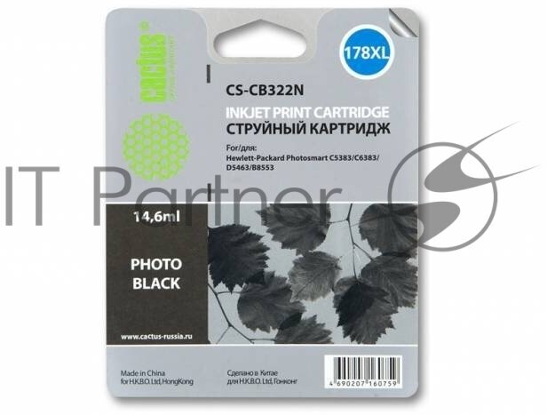 Картридж Cactus CS-CB322N(CS-CB322) №178XL фото черный, для HP PS B8553/C5383/C6383/D5463