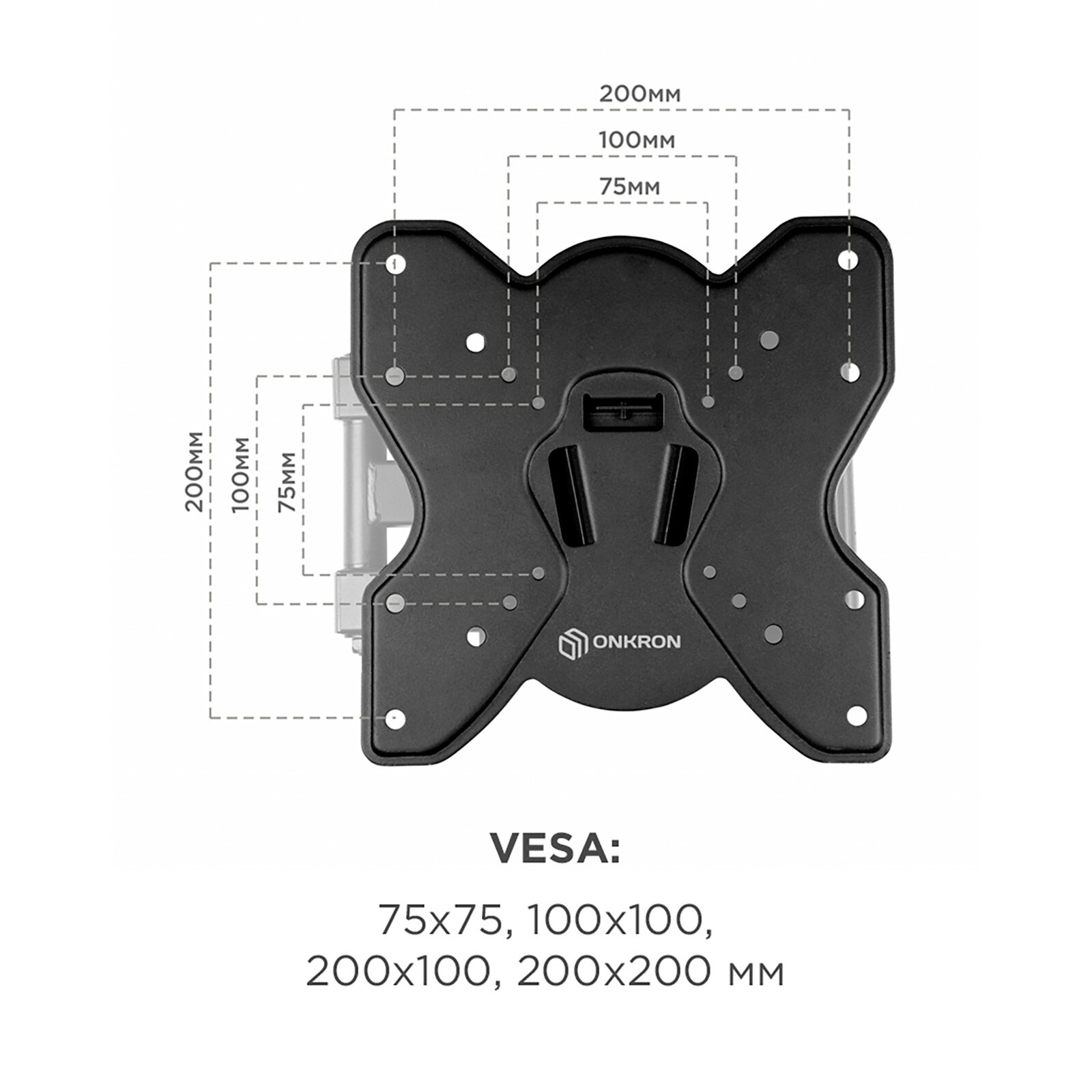 Кронштейн ONKRON/ 17-42'' макс 200*200 мм, наклон -+ 8?, поворот: 45°, от стены 85 мм, макс вес 35кг, черный