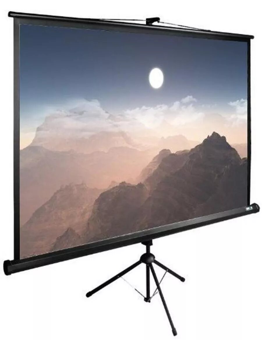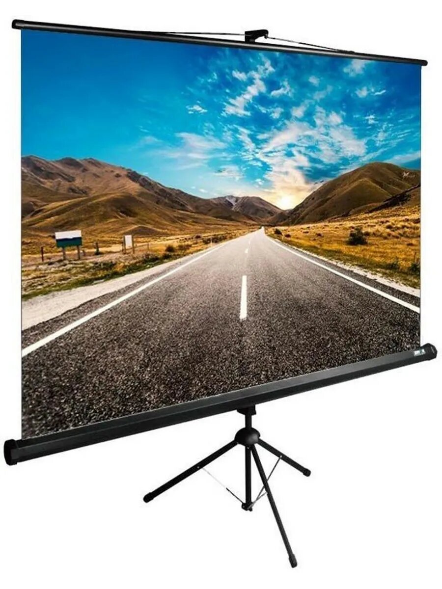 Конструкция позволяет легко и быстро развернуть экран и также быстро свернуть его обратно в любой момент. Прочность конструкции обеспечивает штатив, позволяющий зафиксировать полотно экрана. Компактный корпус черного цвета занимает минимум пространства.