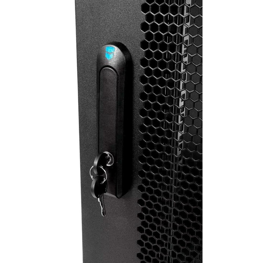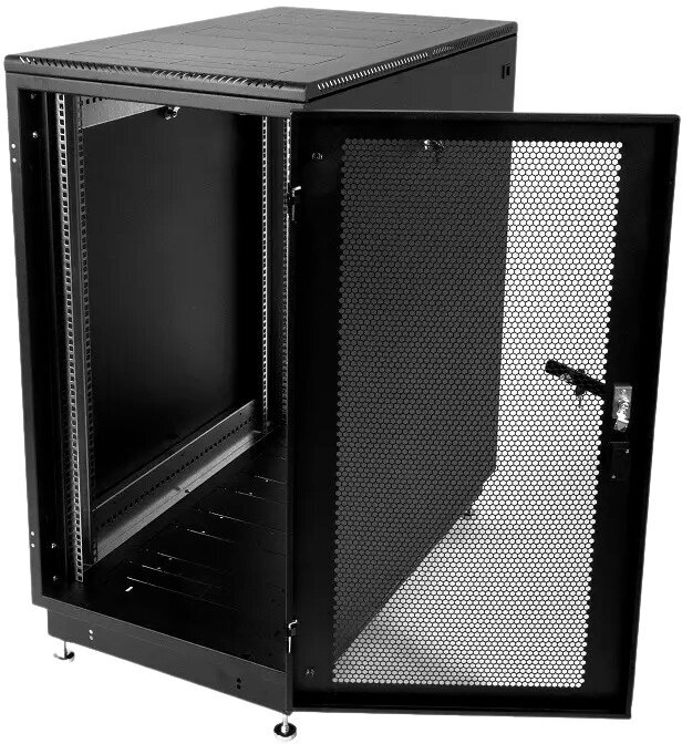 Шкаф коммутационный ЦМО черный, вместимость 27U, размер 600x1000мм, передняя дверь перфорированная, задняя дверь перфорированная, стенки 2, направляющие закл.гайки, нагрузка до 600кг