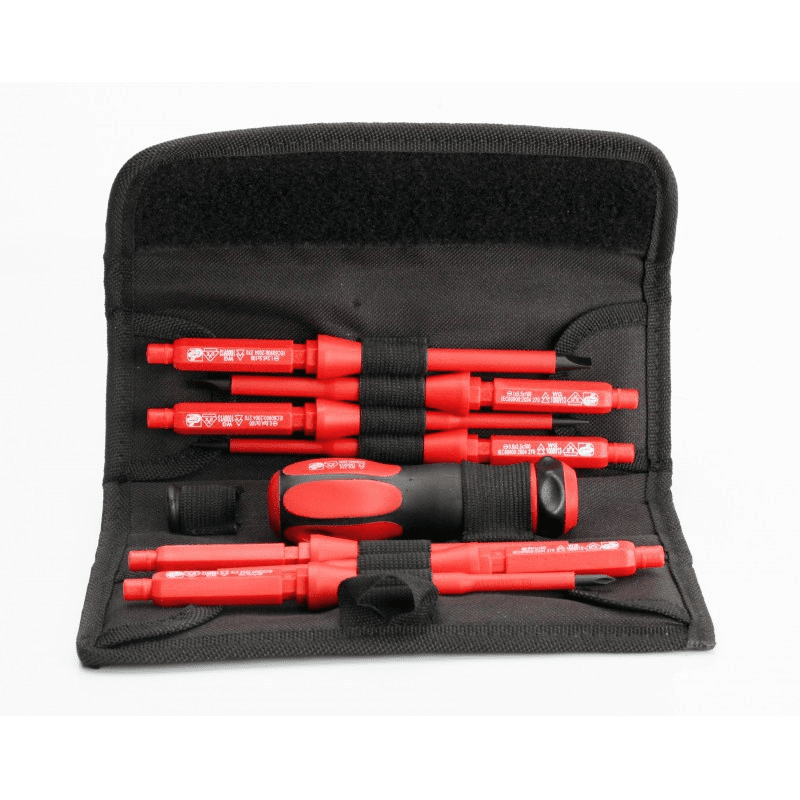 Набор диэлектрических отверток КВТ НИО-1107 включает в себя рукоятку с надежным поворотным механизмом, сменные стержни с разными шлицами, а также сумку с петлей для ношения на поясе для удобства использования. Диэлектрическое покрытие позволяет работать с оборудованием под высоким напряжением. Намагниченный наконечник облегчает установку и развинчивание крепежа в труднодоступных местах.