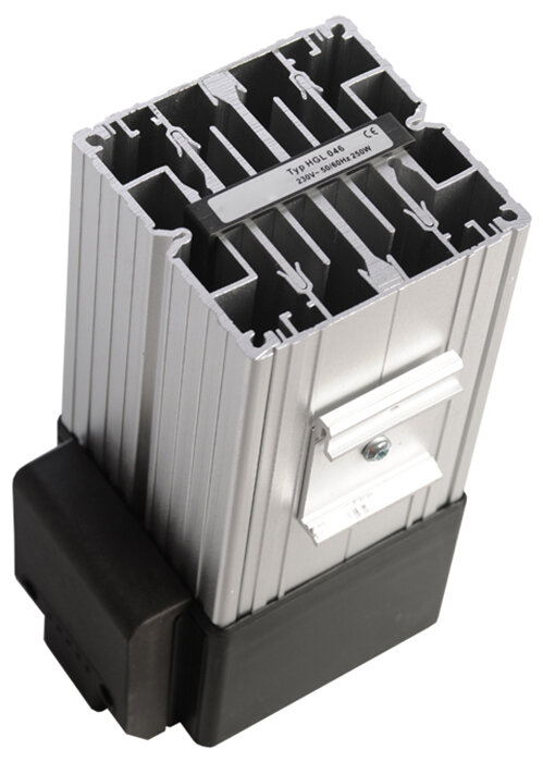 | Прочие особенности и свойства | Предназначен для длительного стабильного поддержания требуемой температуры внутри телекоммуникационных и электротехнических шкафов. Нагреватель интегрирован с мощным осевым вентилятором, что позволяет активно обеспечивать равномерную температуру внутри шкафов различных размеров. Мощность нагревателя 400Вт. ,,Корпус выполнен из алюминия, в нижней части корпуса установлен вентилятор мощностью 45м/ч. Нагревательный элемент резистивного типа, ограничивающий максимальную температуру в случае отказа вентилятора, но не исключающий использование терморегулятора. Нагреватель устанавливается на DIN-рейку 35 мм. Подсоединяется трехполюсным зажимом 1.5 мм с максимальным момент затяжки 0,8 Нм . |