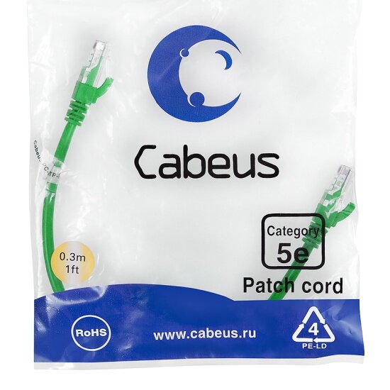 Кабель патч-корд UTP 5e кат. 03м. Cabeus PC-UTP-RJ45-Cat.5e-0.3m-GN