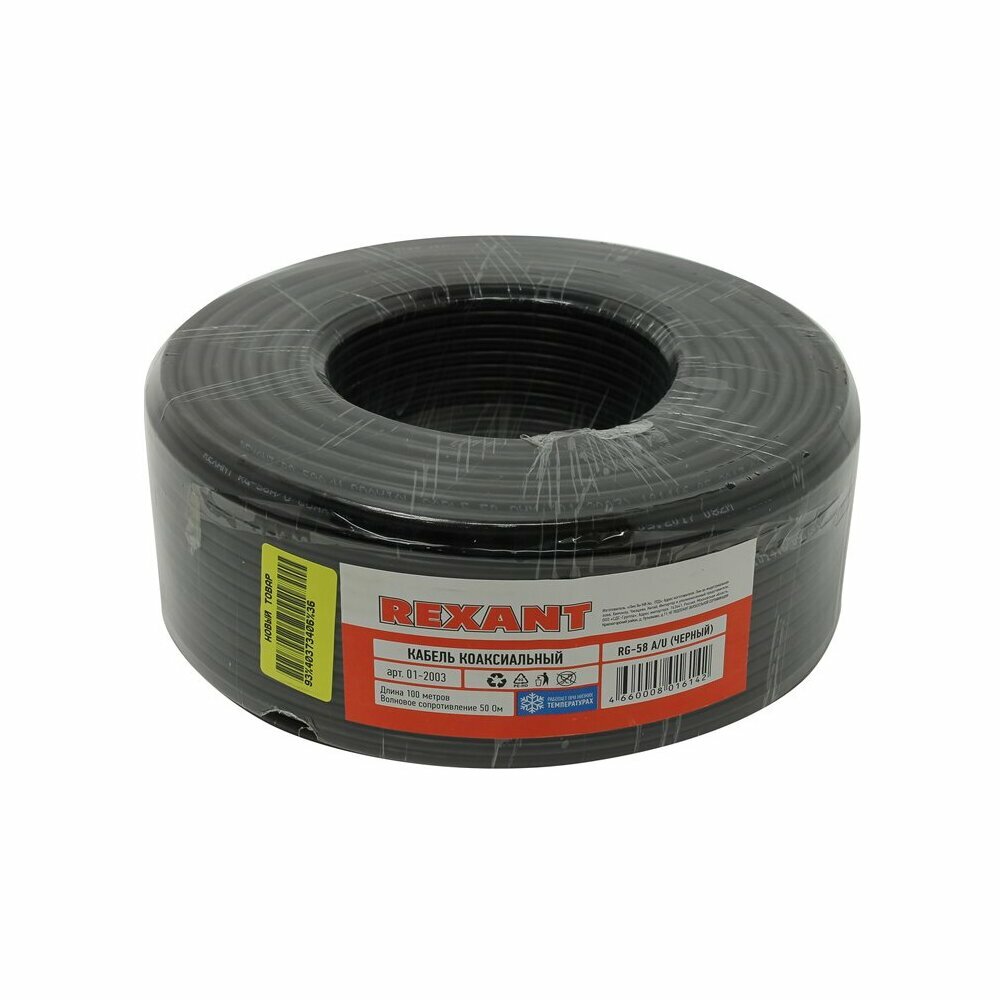 Кабель Rexant RG-58 A/U, (64%), 50 Ом, 100м., черный