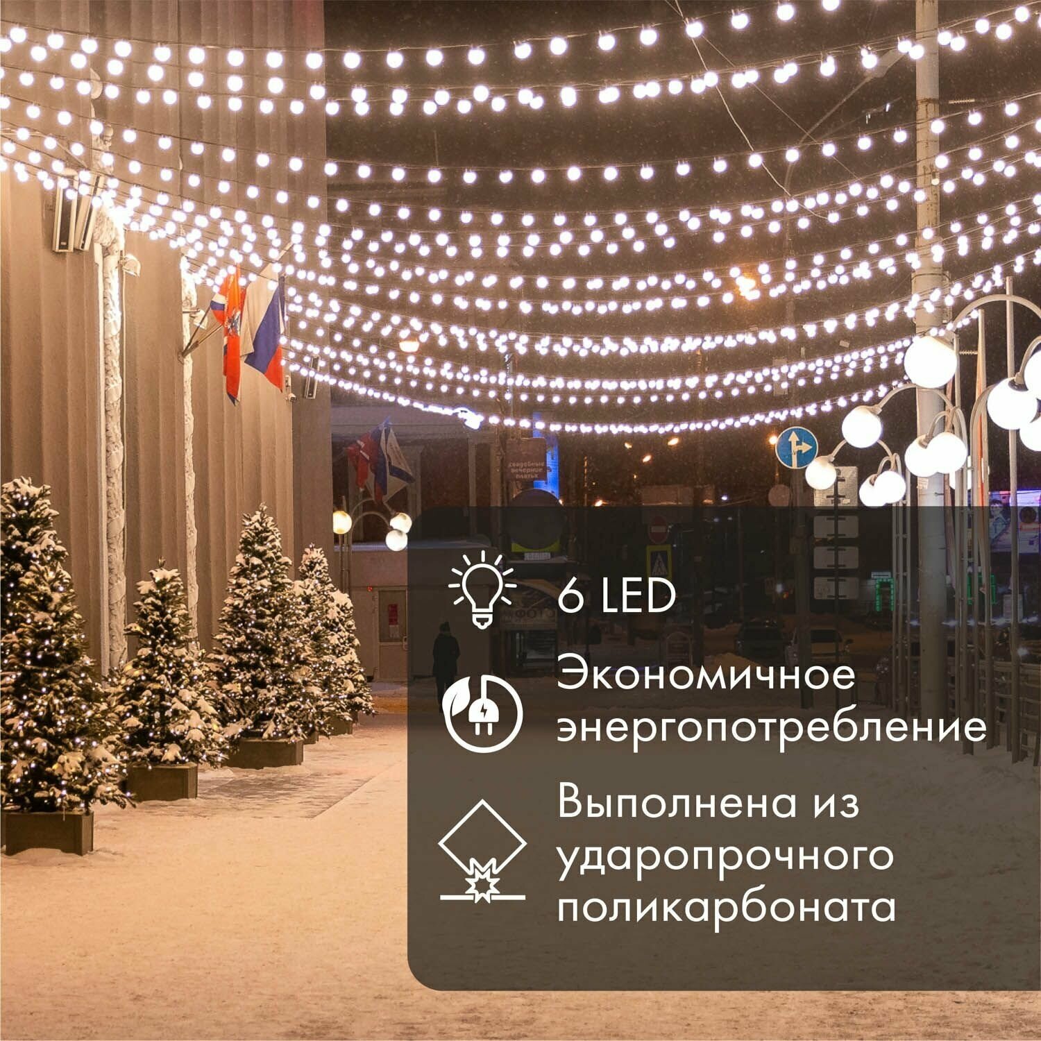 Декоративные светодиодные лампы используются с гирляндой Belt Light и служат для украшения улиц, фасадов зданий и интерьеров. Колба лампы имеет форму шара, что позволяет увеличить площадь свечения и насыщенность светом окружающего пространства.