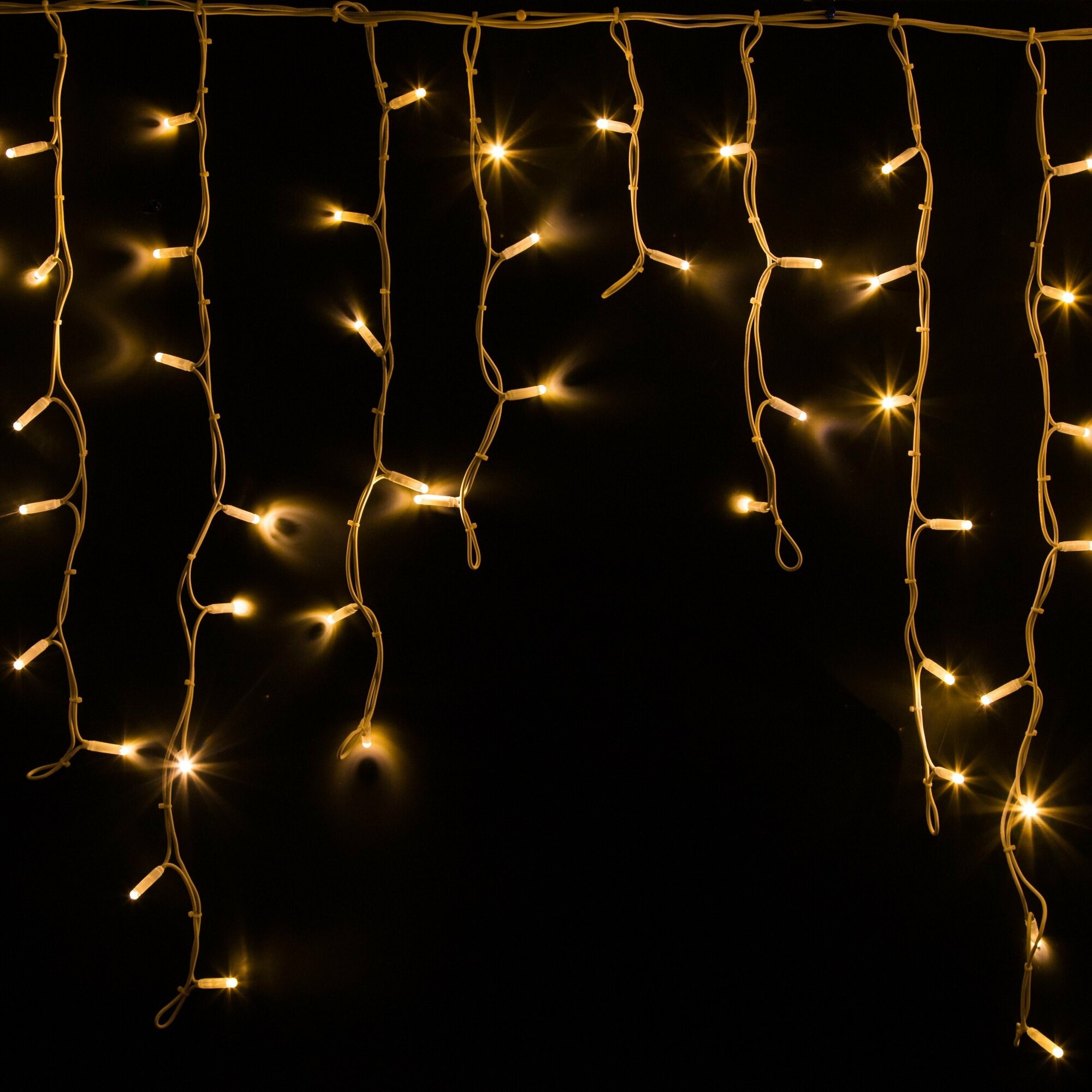 Гирлянда «Бахрома» («Айсикл») представляет собой гибкий горизонтальный шнур-шину, к которому через определенные промежутки крепятся вертикальные нити разной длины со светодиодами. Она имитирует сосульки и может послужить эффектным и оригинальным решением при декорировании карнизов домов, арок, фасадов зданий, витрин магазинов, а также стать элементов декора внутренних интерьеров помещений.
