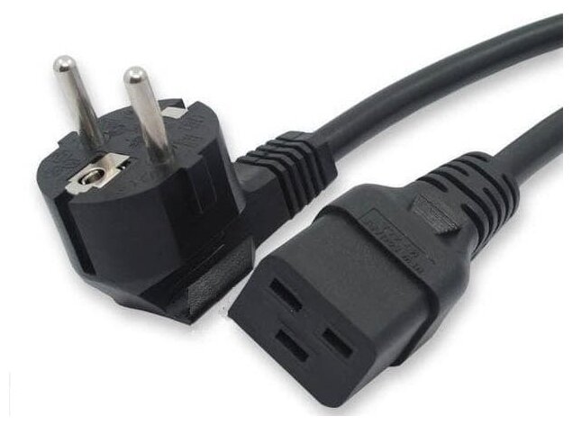 Кабель питания для подключения электрооборудования к электрической сети переменного тока. Армирован опрессованной штепсельной вилкой, с одной стороны, и опрессованной соединительной розеткой — с другой. Может использоваться в качестве шнура для блоков розеток Hyperline.