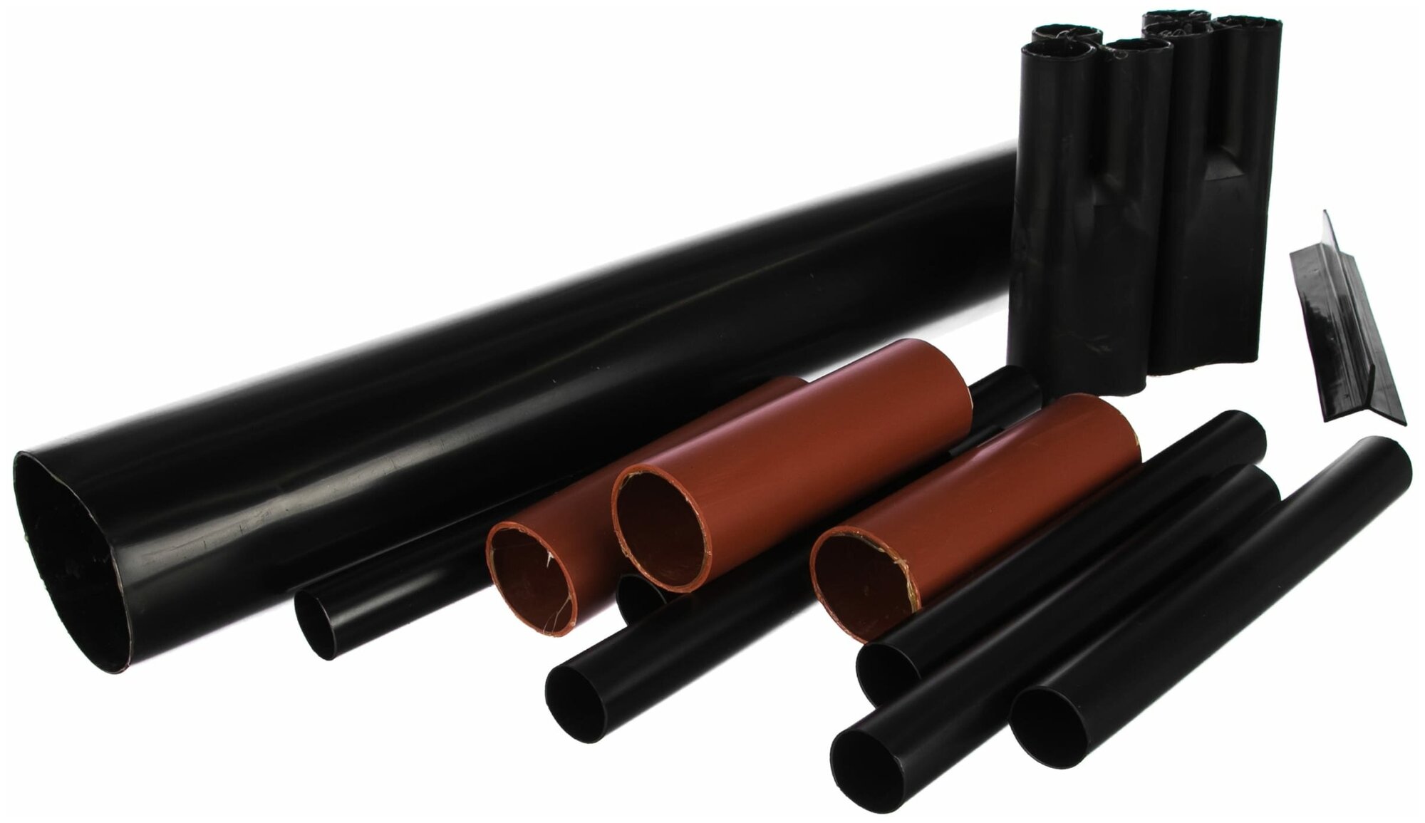 Соединительные кабельные муфты предназначены для оконцевания кабелей. Изолирующие толстостенные манжеты на места соединения жил выполнены из специального материала кирпично-красного цвета, обладающего повышенной электрической прочностью. Толстостенные манжеты с внутренним слоем термоплавкого клея обеспечивают надежную изоляцию и герметизацию мест соединения жил кабеля
