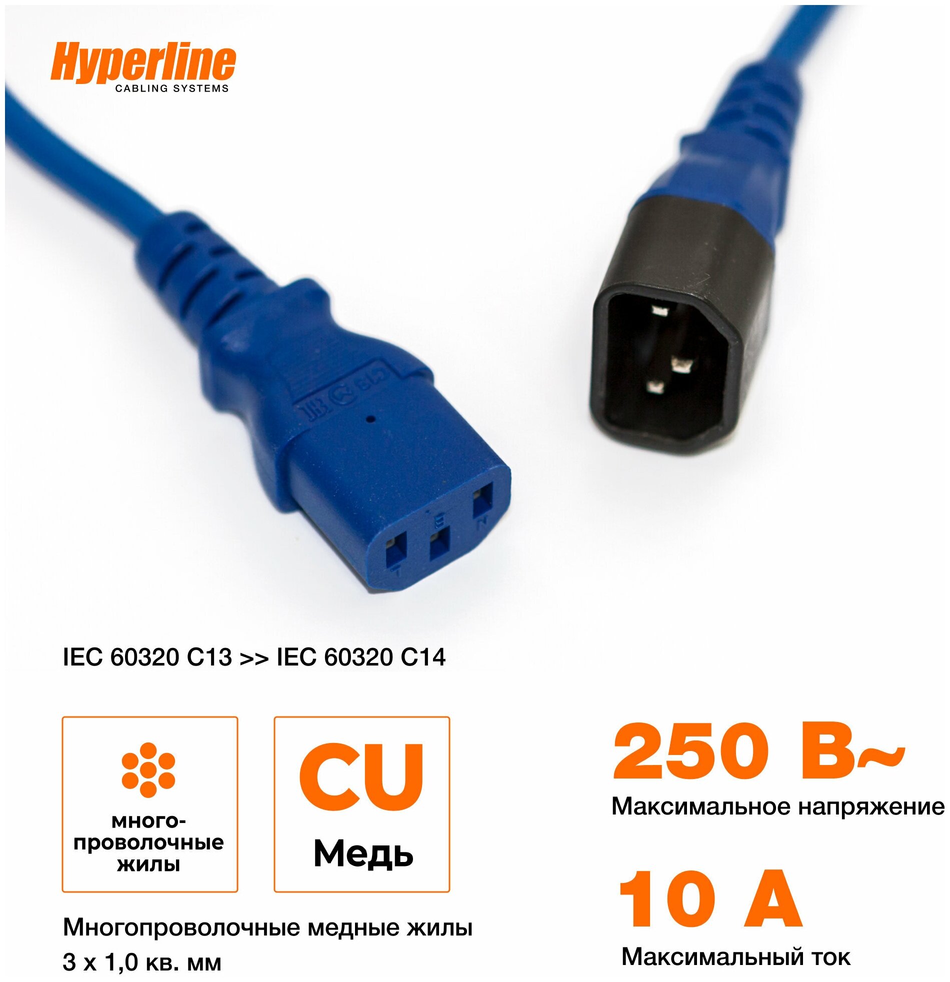 Кабель питания Hyperline PWC-IEC13-IEC14-5.0-BL
