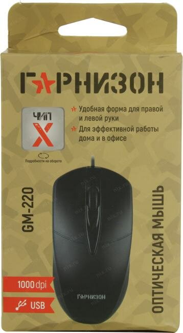 Мышь Гарнизон GM-220 — это классическая мышка для компьютера с проводным подключением через USB интерфейс. Мышка имеет симметричную форму корпуса, которая отлично подходит для работы как правой так и левой рукой.