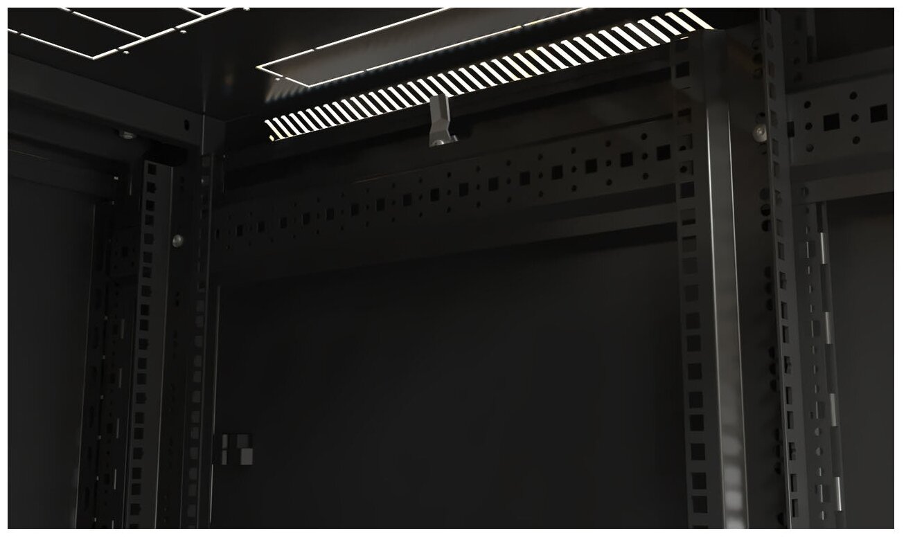 Обеспечивает монтаж оборудования по 19" стандарту. Используется для напольного монтажа внутри помещений. Передние и задние двери оснащены удобной ручкой и индивидуальным замком. Съемные боковые панели закрываются защелками и цилиндрическими замками. Съемные заглушки для установки фальшпанелей и ввода кабелей в полу и крыше. Конструкция крыши с простым и удобным монтажом вентиляторных модулей. При размещении тяжелого оборудования шкаф можно установить на цоколь.